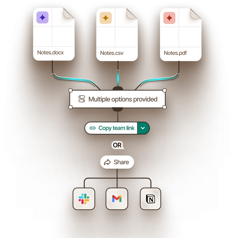 You can export notes in multiple formats and easily share summaries, action items, and highlights with teammates or external stakeholders.