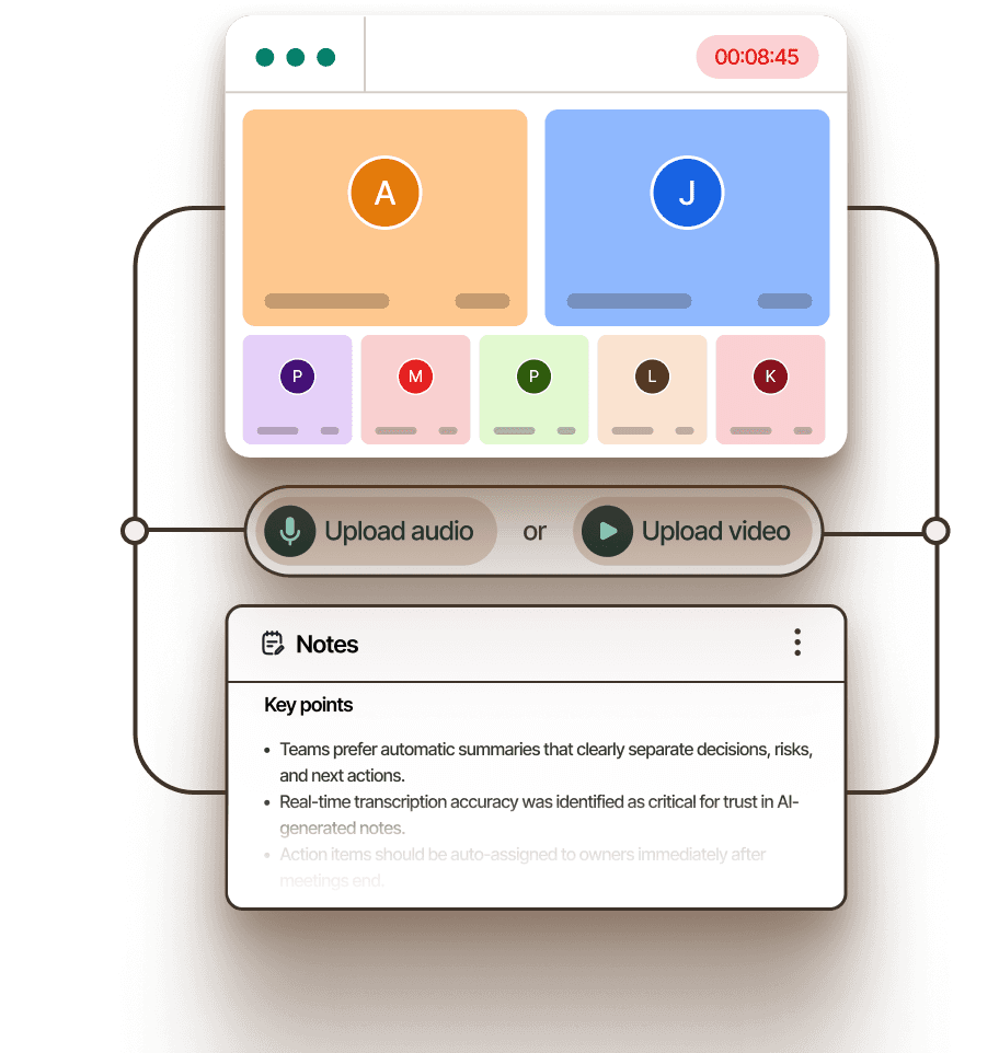 AI automatically processes meetings into readable notes, summaries, and clear discussion points.